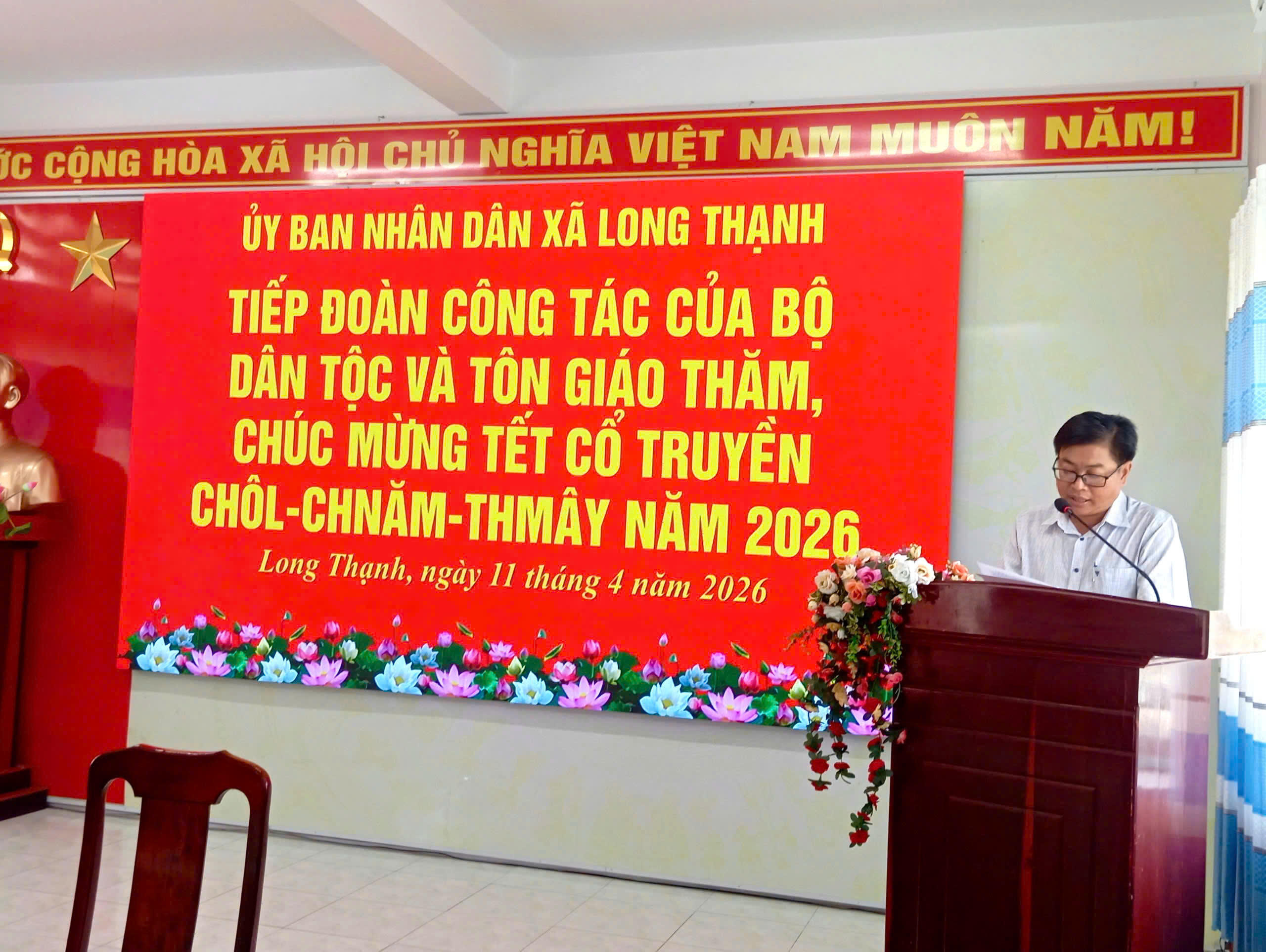 Đại diện lãnh đạo xã Long Thạnh đã bày tỏ sự cảm ơn đối với sự quan tâm của Bộ Dân tộc và Tôn giáo cùng Đoàn công tác; đồng thời khẳng định địa phương sẽ tiếp tục triển khai hiệu quả các chính sách dân tộc, chăm lo tốt hơn đời sống nhân dân, nhất là hộ nghèo, hộ đồng bào dân tộc Khmer.