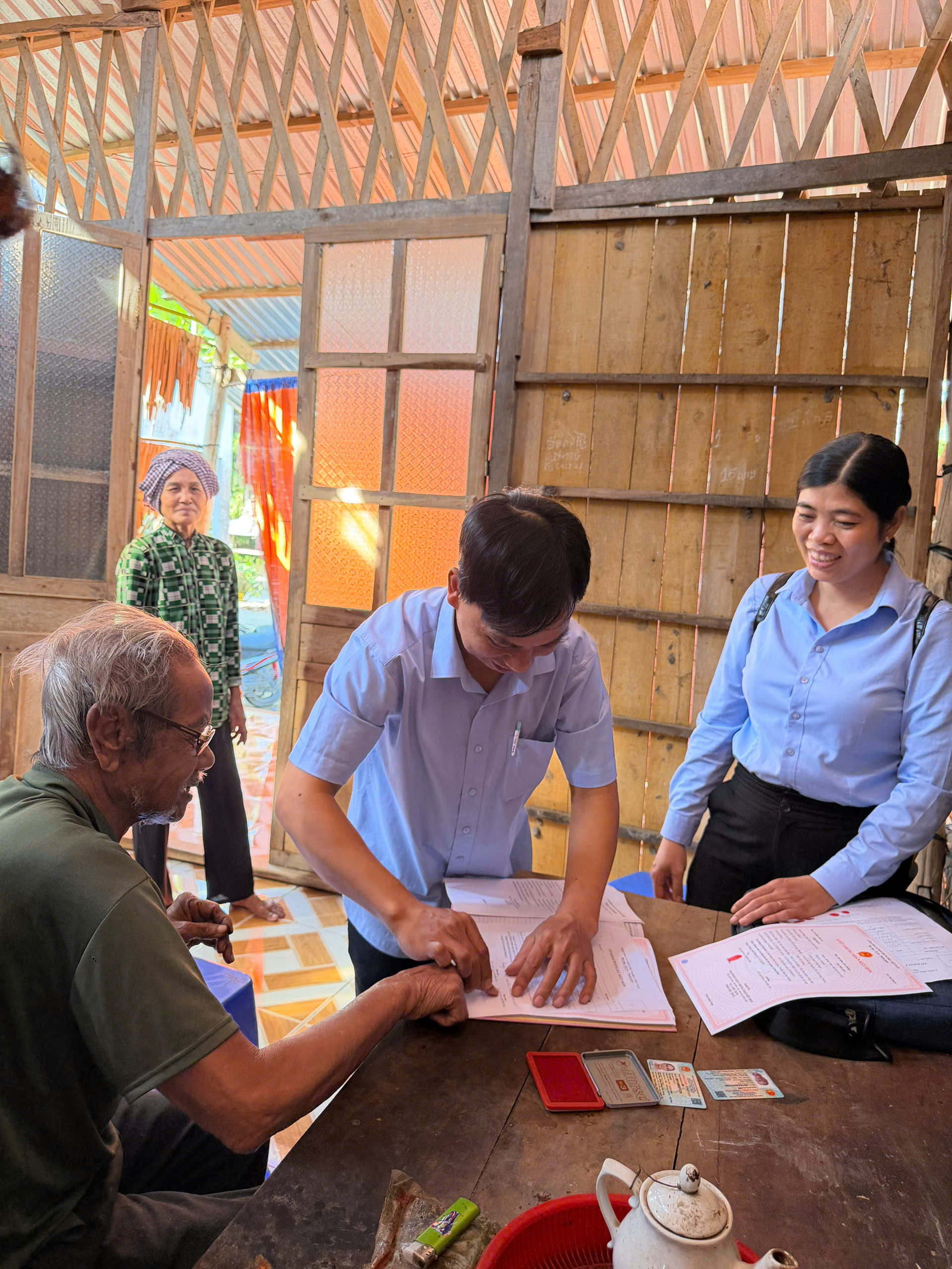 Ảnh: đồng chí Trần Văn Đà công chức tư pháp xã Long Thạnh đang thực hiện TTHC tại nhà cho người dân.