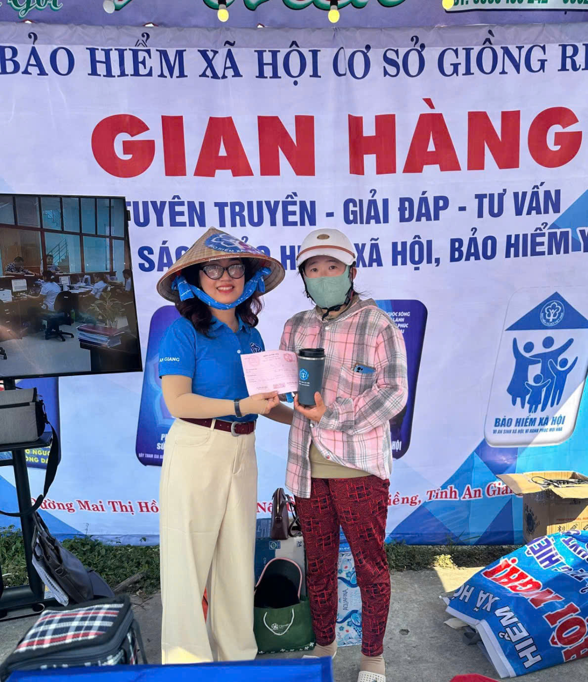 Người dân tham gia BHXH tự nguyện và nhận quà ngay tại gian hàng.