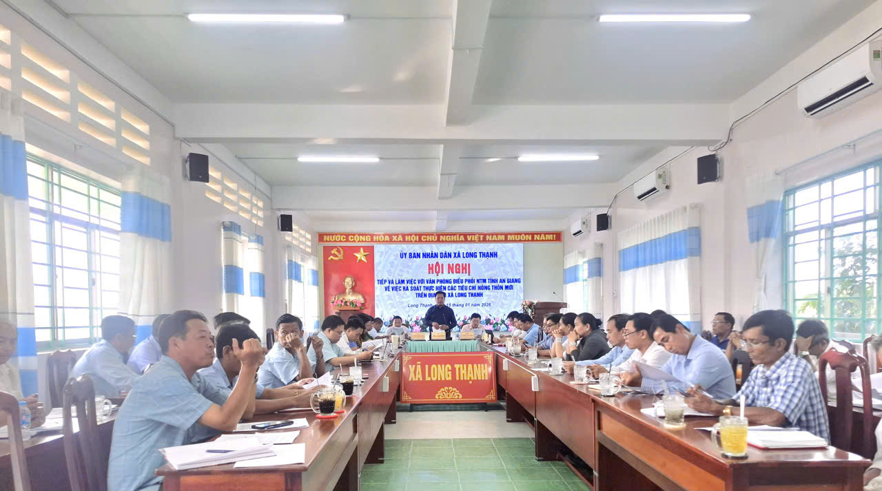 Chiều ngày 15/01/2026, Tại hội trường UBND xã Long Thạnh tổ chức buổi tiếp và làm việc với Văn phòng Điều phối Nông thôn mới tỉnh An Giang về việc rà soát thực hiện các tiêu chí nông thôn mới trên địa bàn xã Long Thạnh.